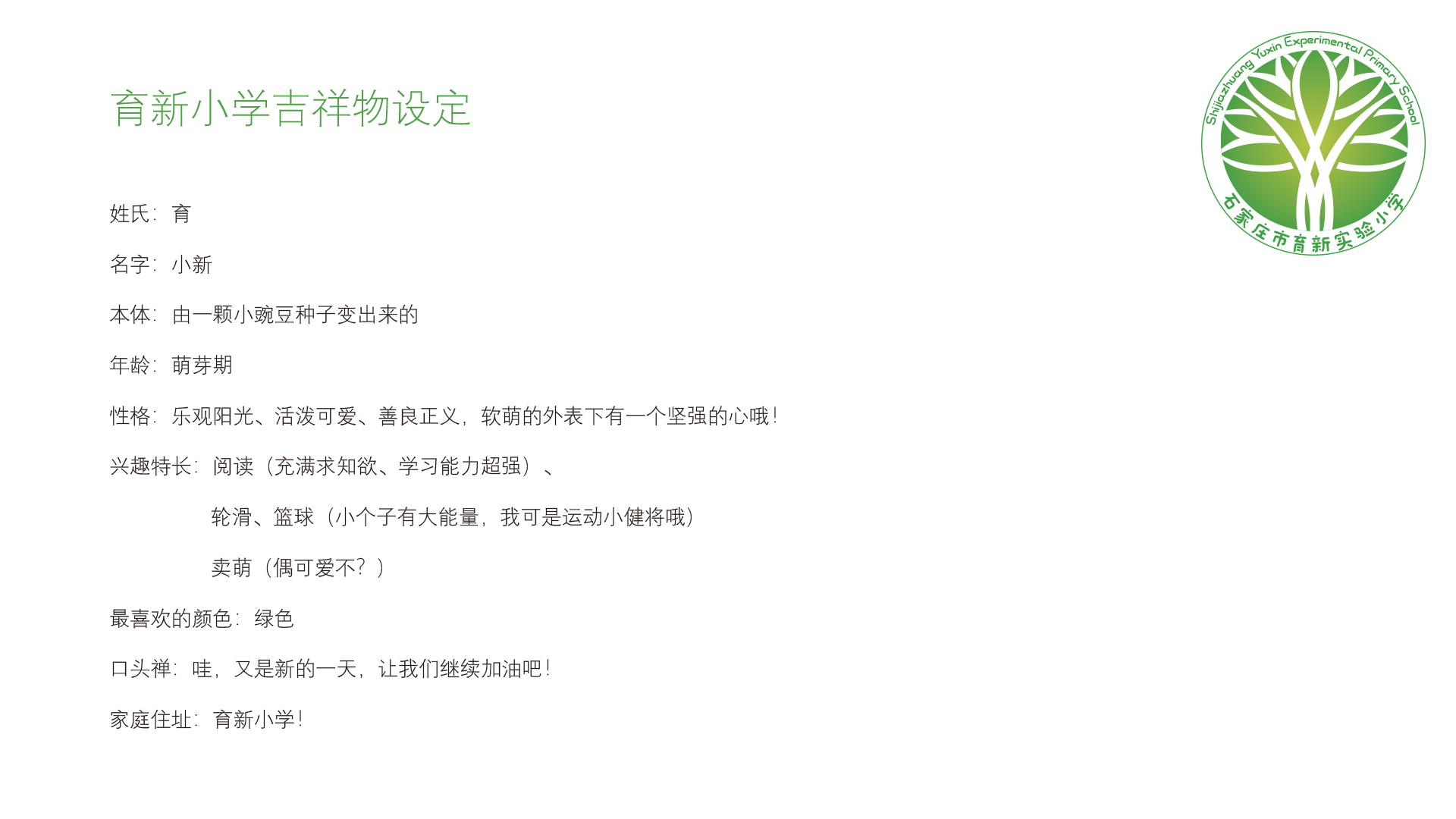 豌豆精灵育小新——育新实验小学吉祥物定制设计